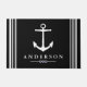 Anchors away! Greet your guests with this statement making white nautical anchor doormat.. The background is black with personalised family name text in white. This doormat is elegant, chic, and would make a great impression on your house guests as they are welcomed to your home!