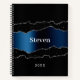 Black navy blue silver agate geode name notebook