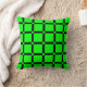 This geometric throw pillow features a black square grid pattern on a neon green background.