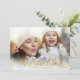 “New Year Cheer.” A playful visual of tiny faux gold glitter snowflakes and dots and faux gold foil script typography, overlaying the photo of your choice, helps you usher in the New Year. More gold glitter snowflakes and dots against a black background on the back. Feel the warmth and joy of the holiday season whenever you send this stylish and modern, personalised flat greeting card. Matching and coordinating envelopes, stickers, giftwrap and other products are also available in my “New Year Cheer Snowflakes & Script” store collection. Send this to someone special!