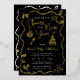 “New Year Cheer.” It’s that time to get together with your family and friends to celebrate each other and ring in the new year. Fun, real gold foil handwritten script typography and hand drawn New Year icon sketch doodles overlay a dramatic, black background. Additional faux gold colored hand drawn doodles on black adorn the back. Feel the warmth and joy of the holiday season when you send out this fun, playful, modern, personalized New Year’s Eve party invitation. Make this coming year one to remember!
