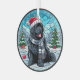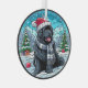 Black Newf with Santa Hat Stained Glass Style Glass Tree Decoration