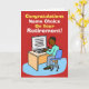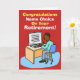 A Fun Retirement Card for a black male that you can personalise with the name of the recipient. Black man retiring. Design is an illustration of a man working at his desk using a computer. Black office colleague retiring.