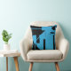A rich and intense combination of colour is featured in a bold, geometric design in black and medium blue, possibly suggestive of a human stick figure (?) The abstract image is transposed horizontally on the reverse side. Inspired by the Mid-Century Modern style, the image projects an elegant and minimalist quality, an artistic and chic vibe for living area, bedroom, workspace, terrace, or patio decor. There is also a sense of wamrth and calm, a relaxed and comfortable ambience for your personal home space. There is much decorative potential in this accent piece, which fits in with a numerous styles, from retro/vintage to rustic ranch to modern urban loft or high rise.
