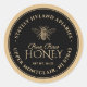 This honey label is fully editable. Personalise with your apiary name, location, type of honey and honey net weight. Common honey net weight conversions: 8oz (227g), 12oz (340g), 16oz (454g), 32oz (907g), 5lb (2.27kg). Black circle on a kraft background and brown text. Honey bee illustration is a vintage design.