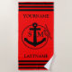 Introducing our Black on Red Anchor Rope Personalised Beach Towel! This beautiful, unique towel is perfect for the beach, pool, or lake. It's custom made with your name or initials, making it a great gift for anyone who loves the outdoors. The bold black and red colours are perfect for any summertime activity. Order yours today and be ready for summer fun!