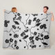 Black on Silver Pattern Birds and Cherry Blossoms Fleece Blanket