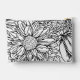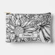 This cosmetics bag features an oversized line art drawing of chrysanthemums in black over a white background on both sides and with a personalized name on one side. Original art from Dogwood & Thistle.