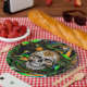 Black Orange and Lime Green Sugar Skull Art Paper Plate