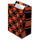 Black Orange Chequered Square Pattern Medium Gift Bag designed by Nisha Prabhu. This medium-sized gift bag features a modern and stylish design with a black and orange chequered square pattern. The vibrant colour combination adds a bold and eye-catching touch to any occasion. With its unique design and practical features, this Black Orange Chequered Square Pattern Medium Gift Bag is sure to impress and delight recipients.