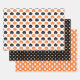 A trio of designs for your Halloween gift. This set includes a black background with orange and white polka dot design, orange and black pumpkin design and a orange background with ghost design. View our full line of gift wrap products in our Zazzle store.
