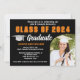 This modern black and orange custom senior photograph graduation party invitation features classy white typography of your college name for the class of 2025. Customise with your graduating year under the chic handwritten script and grad cap for great invites. Add your party or ceremony details next to your graduate photo.