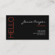 Business card saying HELLO in large orange letters. Black and orange hello business card.
