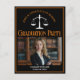 This modern black and orange custom law school graduation party postcard features classy typography for a class of 2024 graduate above your student photo. Customise with your graduating year under the white scales of justice and photograph for elegant personalised lawyer or attorney invite postcards.