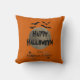 Black Orange Spooky Typography Happy Halloween Cushion