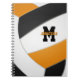 This sporty volleyball themed spiral notebook features a simple, abstractly oversized black, orange and white volleyball - athlete's name and monogram, varsity letter, or jersey number are customisable - by katz_d_zynes