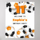 This soccer themed birthday party welcome poster is fully customisable and features randomly arranged orange, black and white soccer balls that are selectively shadowed to give a unique 3D appearance - personalise your custom message and the child's age, or customise the text to suit your event - by katz_d_zynes