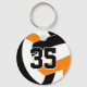 This team colours volleyball keychain features the image of a black, orange and white volleyball on the front and a simple white volleyball on the back - personalise with the athlete's jersey number on the front and name and team name on the back - by katz_d_zynes