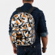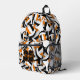 This volleyballs pattern backpack features a random, varied size black, orange & white volleyballs turned every which way on a customisable white background - personalise with the athlete's name & jersey number - by katz_d_zynes