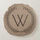Brown rustic country burlap black outlined laurels round pillow! Personalise the monogram letter!