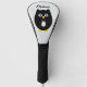 This owl design golf club head cover is an accessory that you slide over the head of a golf club for protection against knocks whilst sitting in your golf bag. Made out of polyester, cotton, and marine vinyl with a choice of different piping colours. You can customise this golf club head cover with any text. Should you require any help with customising then contact us through the message link on this page. Black owl design golf club head cover.