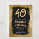 40th birthday celebration 5x7 invitations with black grunge brush stroke rectangular overlay on faux gold foil.
