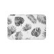 Seamless hand drawn pattern with black palm leaves on white background. Vintage illustration