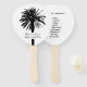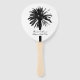 Black and white palm tree beach wedding ceremony program order Hand Fan . Add your own personalised wedding ceremony itinerary timeline schedule. Classy script typography template for couple getting married and guests. Personalise with name and order. Great for summer or destination wedding in exotic climate. Elegant palm tree silhouette design.