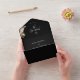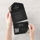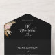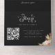 Black all-in-one invitation featuring dried floral pampas grass, desert palm leaf, and boho bohemian calligraphy with bold retro typography. A scannable QR code links to your wedding website and RSVP form. Includes simple minimalist monogram initials—a chic 60s/70s-inspired all-in-one wedding invitation with tropical beach vibes.