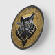 Detailed emblem showcasing a stylised black panther head central to a golden geometric pattern.