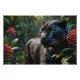 Black Panther - Jaguar in Jungle Red Flowers Photo Print
