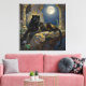 A black panther themed wall art. On the front is an illustration of a majestic black panther with fur like molten black and gold, laying on a cliff ledge bathed in ethereal moonlight. Intricate carvings adorn crumbling stone pillars, and bioluminescent flora casts a soft, otherworldly glow. The scene is rendered in a rich, textural oil painting style with thick, .