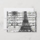 Beautiful rsvp featuring map of Paris and Eiffel tower on background of vintage chevrons and Mozart sheet music.