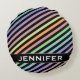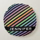 Black & Pastel Colour Lines Pattern + Custom Name Round Cushion