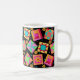Quilt art based on original art features favourite patchwork quilt blocks plus unique blocks created by Phyllis Dobbs in vibrant and dynamic colours and tossed on black background. Show your love of quilting with these designs while drinking your favourite beverage in this mug. Fully customisable.