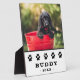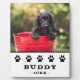 Cute Black Paw Print Pet Dog Photo Name Keepsake plaque. The design has a photo of a dog and dog`s name with a black dog paws. A great keepsake gift for a dog owner.