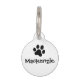 This simply designed pet ID tag will help get your beloved pet back to you where they belong. By having an identification tag on your dog, anyone who finds them will be able to contact you immediately.  If they are picked up by your local animal control or humane society, the will soon be back in your arms.  This tag has one black paw print and a white background.  This is a fully customisable item.  The paw print can be moved around and the colour of the text and the background colour changed. On the front and back replace the contact information and pet's name with your own information.  This is set up as a template item which will allow you to change both things very easily.