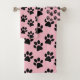 Black Paw Prints Design Bath Towel Set with customisable background colour to match your bathroom decor.