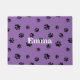 Black Paw Prints Pattern with Purple Background Doormat