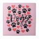 Black Paw Prints Red Hearts Typography Pink Tile