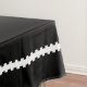 This pretty holiday tablecloth features a black background that you can change to any colour you want easily before ordering! Lovely at the table all season long, the centre has a pine cones and evergreen branches wreath with white text that reads Peace & Joy. A white rick rack design trim surrounds the tablecloth on all four sides.
