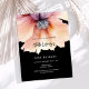 A modern, stylish and glamourous invitation for a 50th (or any age) birthday party. Black coloured background, decorated with a large peach and purple watercolored flower. The name is written with a mode hand lettered style script. Personalise and add your party details.