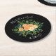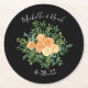 Black & Peach Wedding Modern Floral Round Paper Coaster