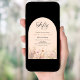 An elegant wildflower invitation. Black background and a peach coloured arch. Decorated with watercolored wildflowers in beige, pink.