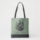 Elegant, ornate, black peacock illustration on a sage green background. Customisable monogram in elegant modern calligraphy.