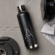 Professional-looking and elegant simple and understated large personalised name and initial letter stainless steel water bottle with a Custom Monogram in a trendy modern and minimal classic sans serif font for a professional, simple and masculine look. Shown in grey on a black metallic water bottle, the text colours and fonts can be changed, and several bottle colours are available in small and large sizes.