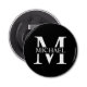 featuring personalised white monogram in classic serif font style with box of name in the middle of monogram on black background.