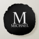 Black Personalised Monogram and Name Round Cushion