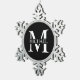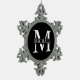 featuring personalised white monogram in classic serif font style with box of name in the middle of monogram on black background.