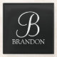 features personalised monogram in white classic script font style and name in white classic serif font style on black background.